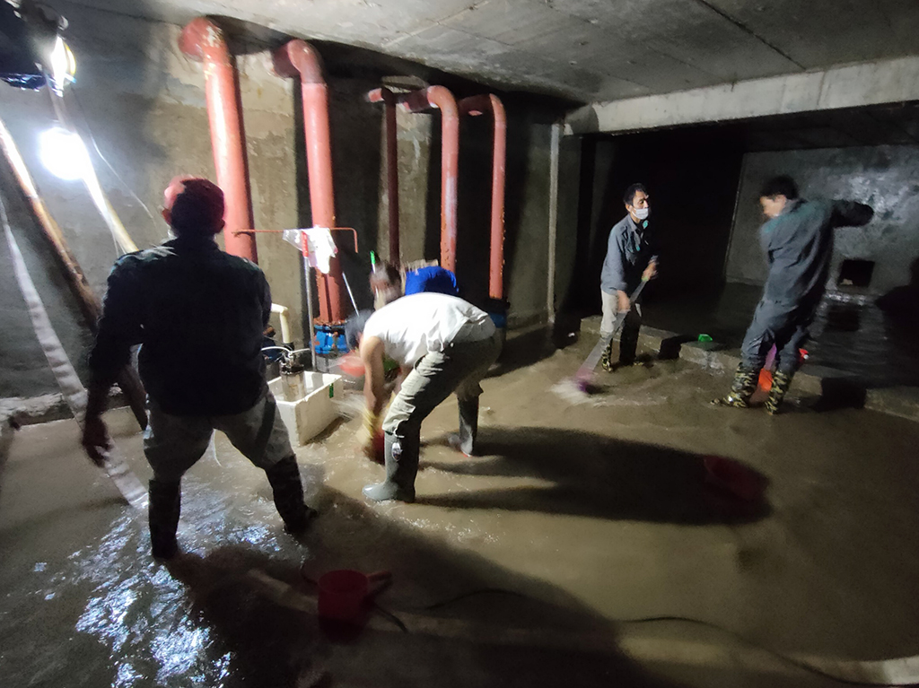 Dùng máy bơm công suất cao để hút toàn bộ nước còn lại, đảm bảo an toàn khi vệ sinh. -