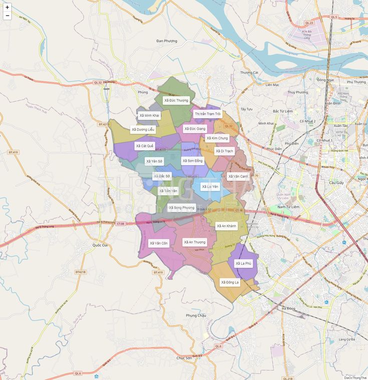 Xã Vân Canh, An Khánh, Di Trạch, Sơn Đồng, Dương Liễu, Vân Côn, Lại Yên, Kim Chung, La Phù, An Thượng, Đông La, Cát Quế…
