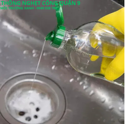 Baking soda + giấm trắng: đổ vào cống, chờ 20 phút rồi xả nước nóng.