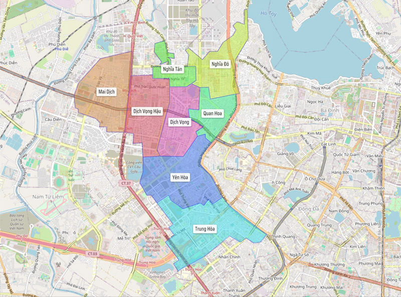Các khu đô thị: Dịch Vọng, Yên Hòa, Trung Hòa – Nhân Chính
