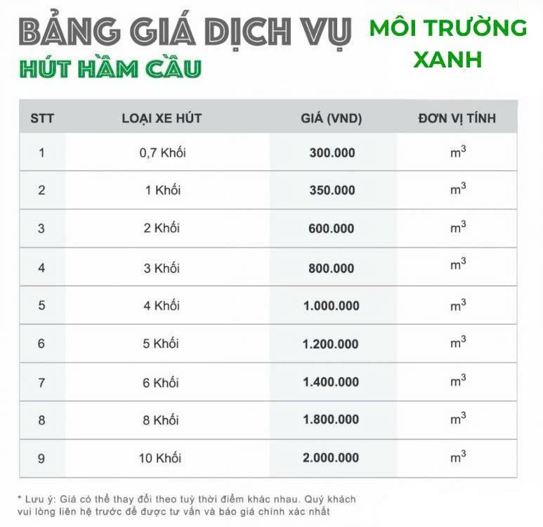 | Dung tích xe hút | Giá trọn gói (VNĐ) | Ghi chú | |