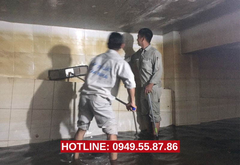 Đội ngũ kỹ thuật thực hiện thau rửa bằng thiết bị chuyên dụng, đảm bảo không tràn nước, không ảnh hưởng đến khu vực xung quanh, đồng thời thu gom và xử lý toàn bộ nước thải theo đúng quy định môi trường.