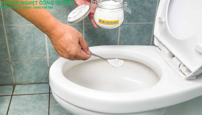 Đổ hỗn hợp baking soda + giấm trắng xuống cống, chờ 15 phút rồi xả nước nóng.