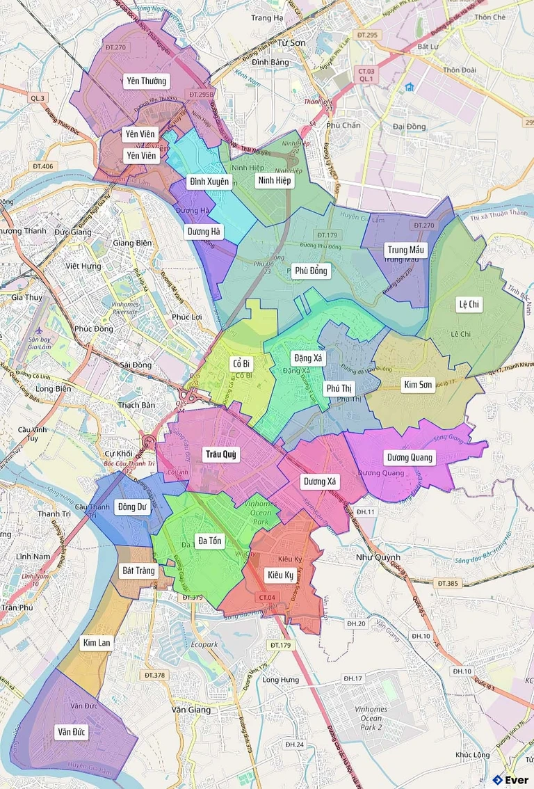 Xã Yên Viên, Dương Xá, Đặng Xá, Ninh Hiệp, Bát Tràng, Phú Thị, Cổ Bi, Lệ Chi…